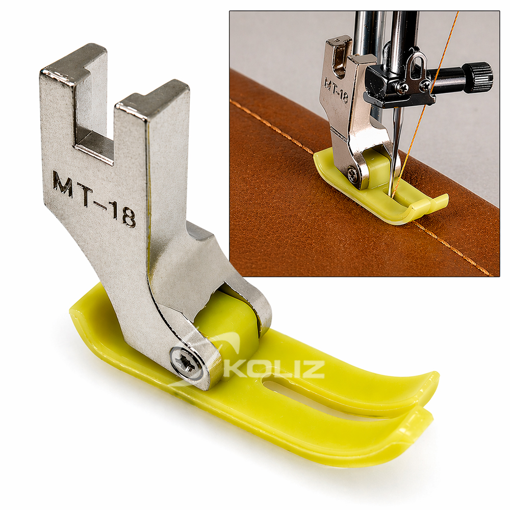 MT18 standartinė tefloninė pėdelė pramoninėms siuvimo mašinoms – aukštos kokybės pėdelė, skirta lengvam sudėtingų medžiagų siuvimui. Tefloninis paviršius sumažina trintį ir leidžia medžiagai sklandžiai slysti, todėl puikiai tinka odai, dirbtinei odai, vinilui, PVC, laminuotiems ir kitoms „lipnioms“ medžiagoms. Užtikrina tolygų siūlės padavimą ir geresnę siuvimo kokybę. Tinka daugeliui pramoninių tiesiasiūlių siuvimo mašinų modelių.