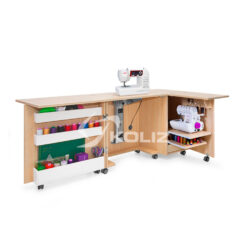 Funkcionalus baldas, pritaikytas siuvimo mašinoms. Kompaktiškas dizainas leidžia stalą lengvai transformuoti į erdvią darbo vietą, o išskleidžiamos dalys suteikia papildomo paviršiaus medžiagų išdėstymui ir siuvimo patogumui.
